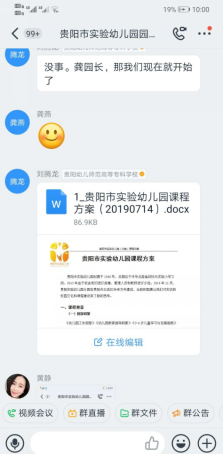 2020年7月8日,贵阳幼专与贵阳实验幼儿园在线上展开了共建园本课程研讨会。会议由贵阳幼专刘腾龙老师主持,贵阳幼专副校长翟理红、贵阳幼专学前教育与早期教育系副主任杨丽、贵阳市实验幼儿园园长龚燕以及双方课程建设项目小组的全体成员均参与了此次研讨会。