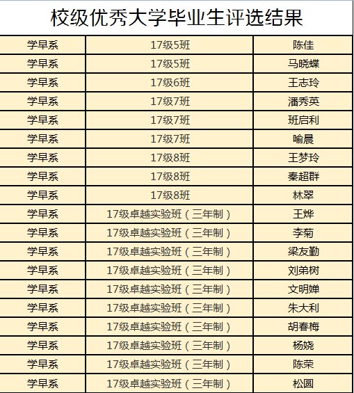 根据《贵州省普通高等学校三好学生、优秀学生干部、优秀毕业生、先进班集体评选办法》(黔教学发〔2018〕169号)、《省教育厅办公室关于开展2020届贵州省普通高等学校优秀毕业生评选推荐工作的通知》(黔教办学函〔2020〕56号)要求,结合《贵阳幼儿师范高等专科学校优秀毕业生评定办法》的规定,经班级申报、系评审小组审核、学校评优评奖委员会办公室审定,同意以下同学荣获“2020届贵州省普通高等学校优秀毕业生”称号及“2020届贵阳幼儿师范高等专科学校优秀毕业生”称号。其中,推荐基础教学部17级软件与信息服务班张灵敏同学入选《追逐梦想2020贵州百名优秀大学毕业生事迹选编》毕业生。