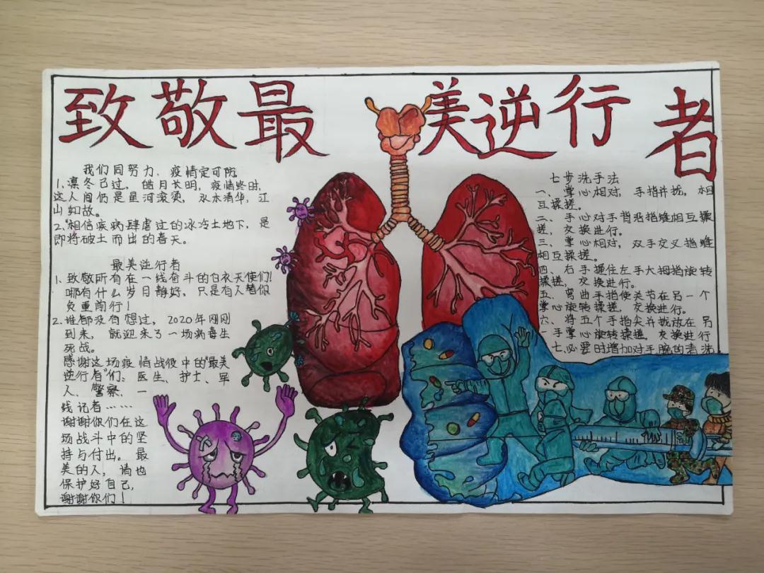 为了更好的进行疫情防控,我校学早系举办了疫情防控系列活动之“抗疫手抄报”展的活动。我校学生在复学后的学习生活中,更加领略了现有的学习生活,是因为无数英雄为我们负重前行。为了表达感谢之情,学生们用生动的文字和画笔致敬了疫情防控中的最美逆行者们,向我们讲述了抗疫英雄故事,弘扬了大爱精神,增强了大家的社会责任感。同时他们也向全体师生普及了疫情防控的科学知识,传播了防疫技巧,倡导科学健康的饮食和生活方式,让我们心连心,众志成城,共同防控疫情!