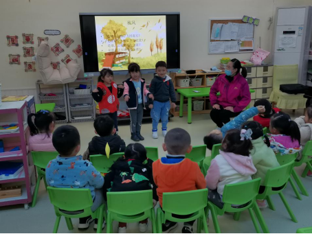 照片一:敖老师组织中班语言活动《秋风》