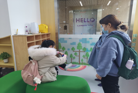 照片一:实习同学进入乐蒙家儿童成长中心