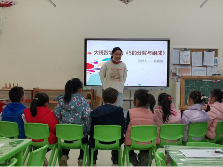 在此次实践中,学科组参与到了幼儿园校本研修《幼儿园新手老师在数学集体活动中如何有效提问的研究》中。在舒老师带领下,学科组观摩了肖嘉怡老师组织的大班数学活动《5的分解与组成》,并针对活动中的无效提问和有效提问进行了记录。