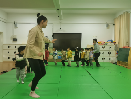 本次入园实践的主要内容是观摩由陈畅与石梅老师指导由18级早期教育专业学生张璐和王海宏同学执教的托班音乐感统活动《拍蚊子》。本次活动在初次开展的基础上进行创新与升级。首先,通过复习拍蚊子游戏唤醒幼儿已有经验,然后将拍蚊子游戏升级,由拍手转换到拍头、拍肩、拍肚子、拍腿、拍脚等。接着,将拍蚊子游戏进行创新变成踩蚊子游戏,促进幼儿利用音乐进行肢体听动统合练习。