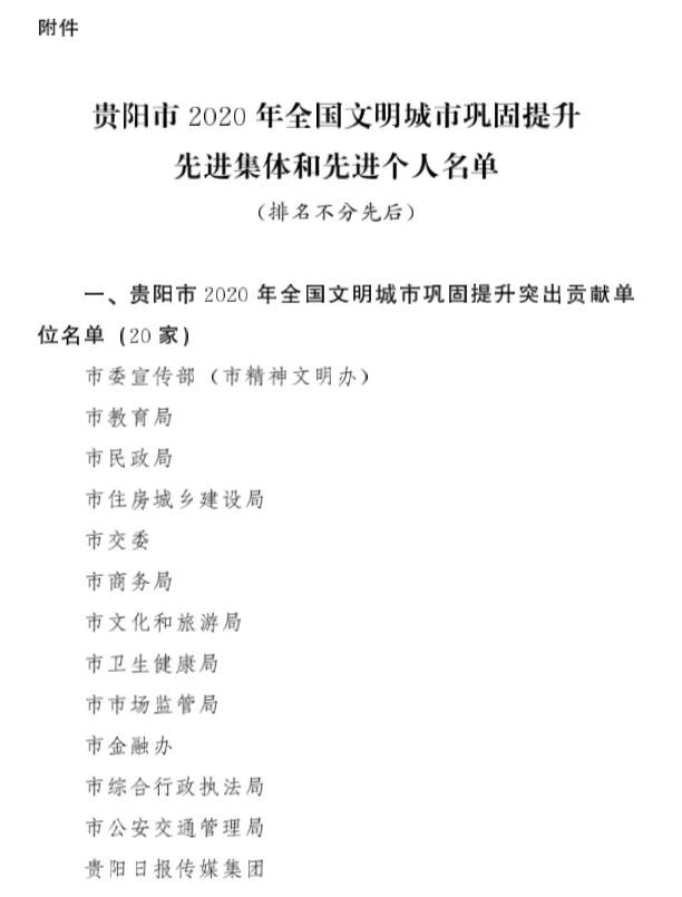 喜报 | 我校获贵阳市2020年全国文明城市巩固提升表彰,我校教师被评为先进个人