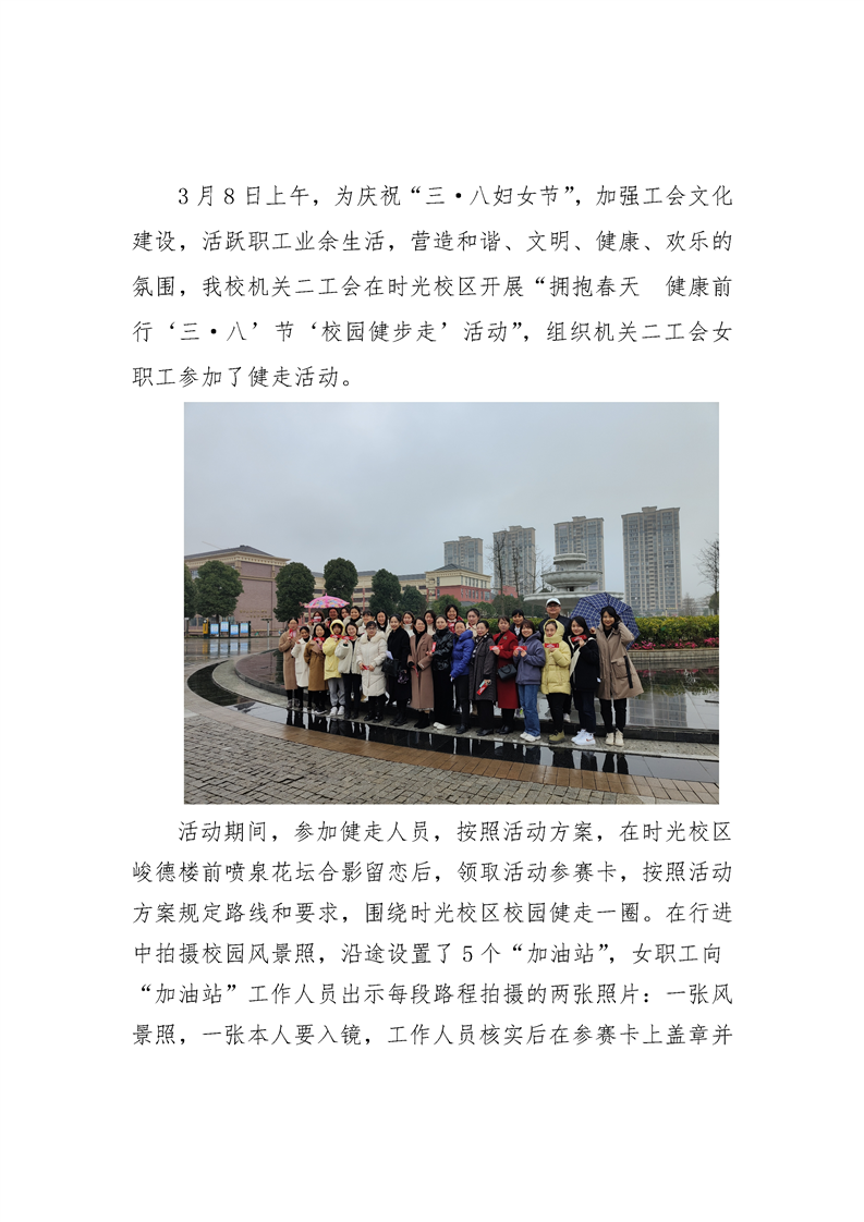 贵阳幼高专机关二工会开展“拥抱春天 健康前行‘三·八’节‘校园健步走’活动”