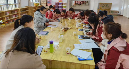 2020-2021年第二学期,学特系、学早系幼儿语言和社会教育课程组前往校附属实验幼儿园进行常规入园实践活动。2021年3月8日下午1:30分,课程组郑莹莹、李林媛、景龙泉、赵苛苛、金国珍5位老师在附属实验幼儿园与园方全体教师研讨入园实践方案。