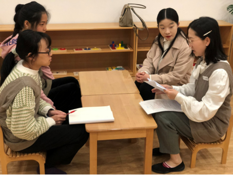 本次见习将四名同学分配至国际城、金朱东路两个校区,并安排好了同学们的住宿。在见面会上,王婷老师为同学们介绍了乐蒙家儿童成长中心的企业文化、教师守则、教学规范等,并针对“你想在这里获得什么”这个问题与同学们展开了讨论。在见面会的最后,王婷老师将同学们分到了不同班级并为他们介绍了指导老师,王婷老师也为同学们提出了要求,希望同学们在工作中拒绝负能量、拒绝没梦想、拒绝没有爱、拒绝不成长,愿四位同学都可以通过这两周时间收获经验、收获成长、收获理想。