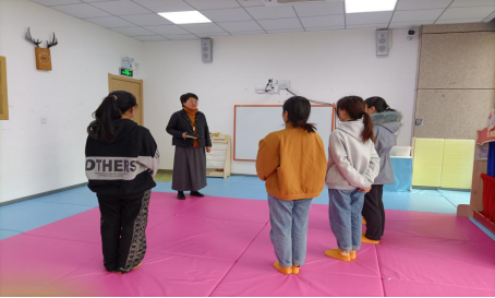 照片二:红黄蓝亲子园邱园长给实习生安排工作