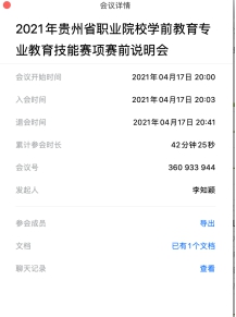 2021年4月17日晚上20:00,贵阳幼儿师范高等专科学校利用腾讯会议组织召开了“2021年贵州省职业院校学前教育专业教育技能赛项线上赛前说明会”,其中10所参赛院校25位老师参加本次线上会议。
