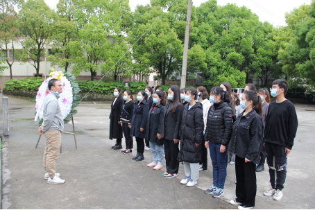 在青山陵园,学前教育与早期教育系教师党员和学生代表来到公墓烈士纪念碑前,向长眠于此的革命烈士默哀致敬,敬献花圈。