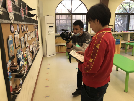 照片二:中班组郭芳老师与摄影师对接录制工作