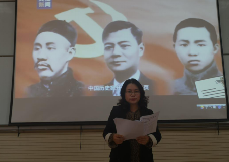 照片一:张远梅副书记解读新民主主义革命时期大事件