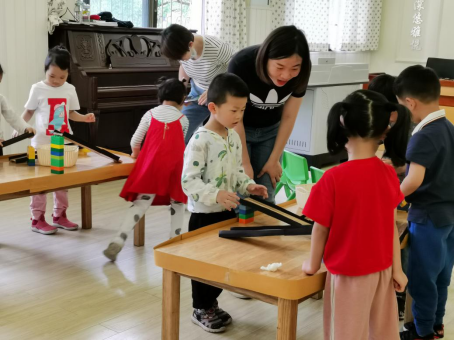 本次入园老师们首先同开阳县东湖幼儿园跟岗学习的老师们一起观摩了中班科学活动《文昌阁的滑梯》,活动由赵斐老师执教。活动中赵斐老师首先通过绘本故事“六宝的文昌阁之旅”激发孩子们的兴趣,引导孩子们去发现文昌阁滑梯的秘密,进而鼓励孩子们运用各种材料探索六宝的滑速快慢与斜坡高度和接触面光滑度的关系。通过这个活动,让孩子们体验了斜坡滑落的乐趣,获得滑速与斜坡高度与接触面光滑度关系的知识,了解斜坡在生活中的应用,培养孩子们运用记录表记录并口头表述滑速快慢的原因。