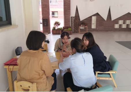 照片一:儿童生理发展学科组老师沟通幼儿园保育工作安排