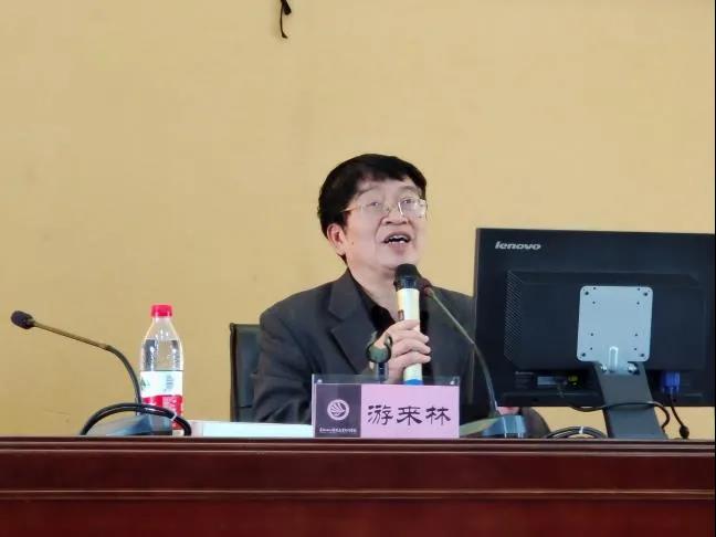 本期“红枫讲坛”由贵州省写作学会会长、贵州财经大学原文传学院院长、硕士研究生导师游来林教授,贵州省写作学会副会长、贵阳学院原中文系主任杜扬教授担任此次宣讲嘉宾。贵州省写作学会副会长兼秘书长、资深媒体人袁锦锋老师主持。贵州省写作学会理事、作家、书法家刘杨老师,我校图书馆相关负责人及学校160多名学生听讲。