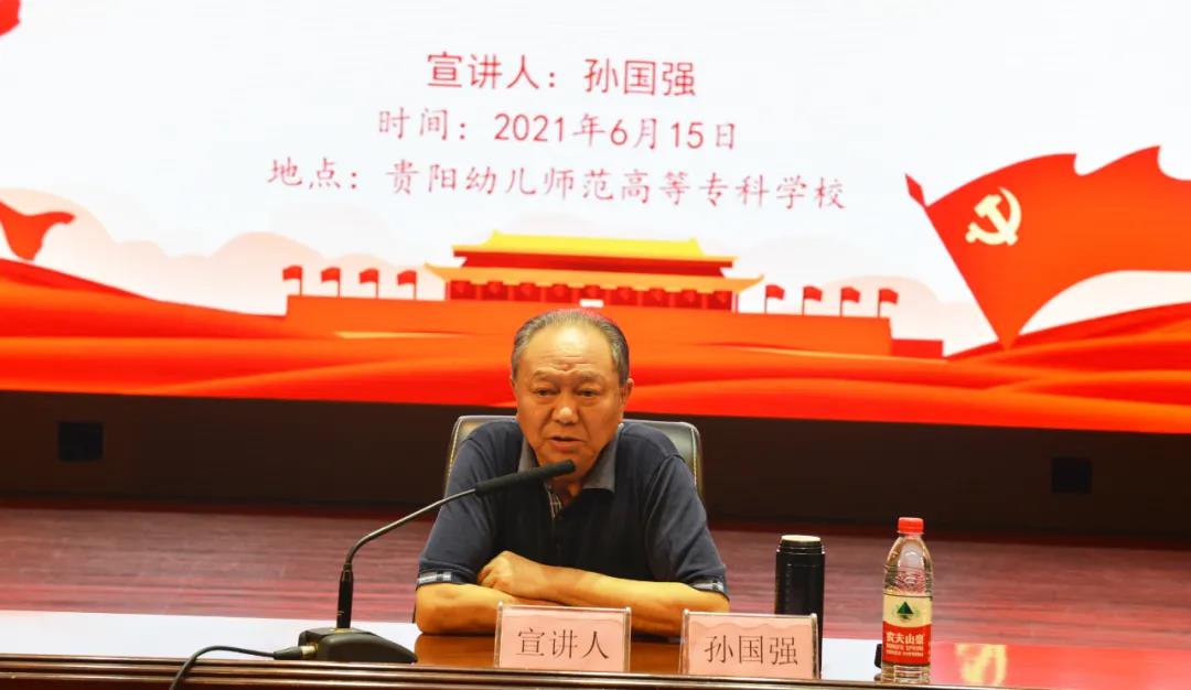 6月15日上午,贵州省政府原副省长、贵州省政协原副主席孙国强受邀,在我校时光校区音乐厅以《百年党史•三大法宝》为题作党史学习教育专题宣讲。校党委书记张曦主持宣讲,校长翟理红,党委副书记李炳昌,党委委员、副校长赵雅卫、潘丽芬,党委委员、纪委书记陈尧年、党委委员、副校长张世琴,党委委员、组织人事部部长任重,校副厅级干部贺永琴及全校副科级以上党员教师、学生党员、预备党员和入党积极分子700余人聆听讲座。