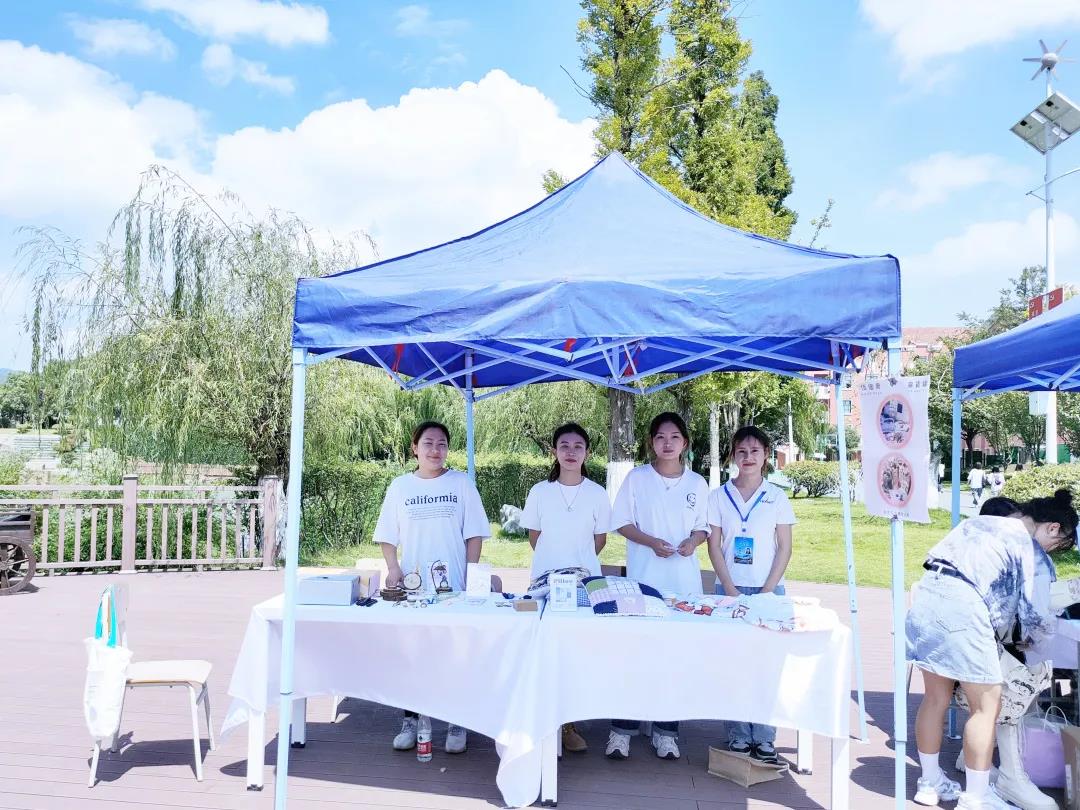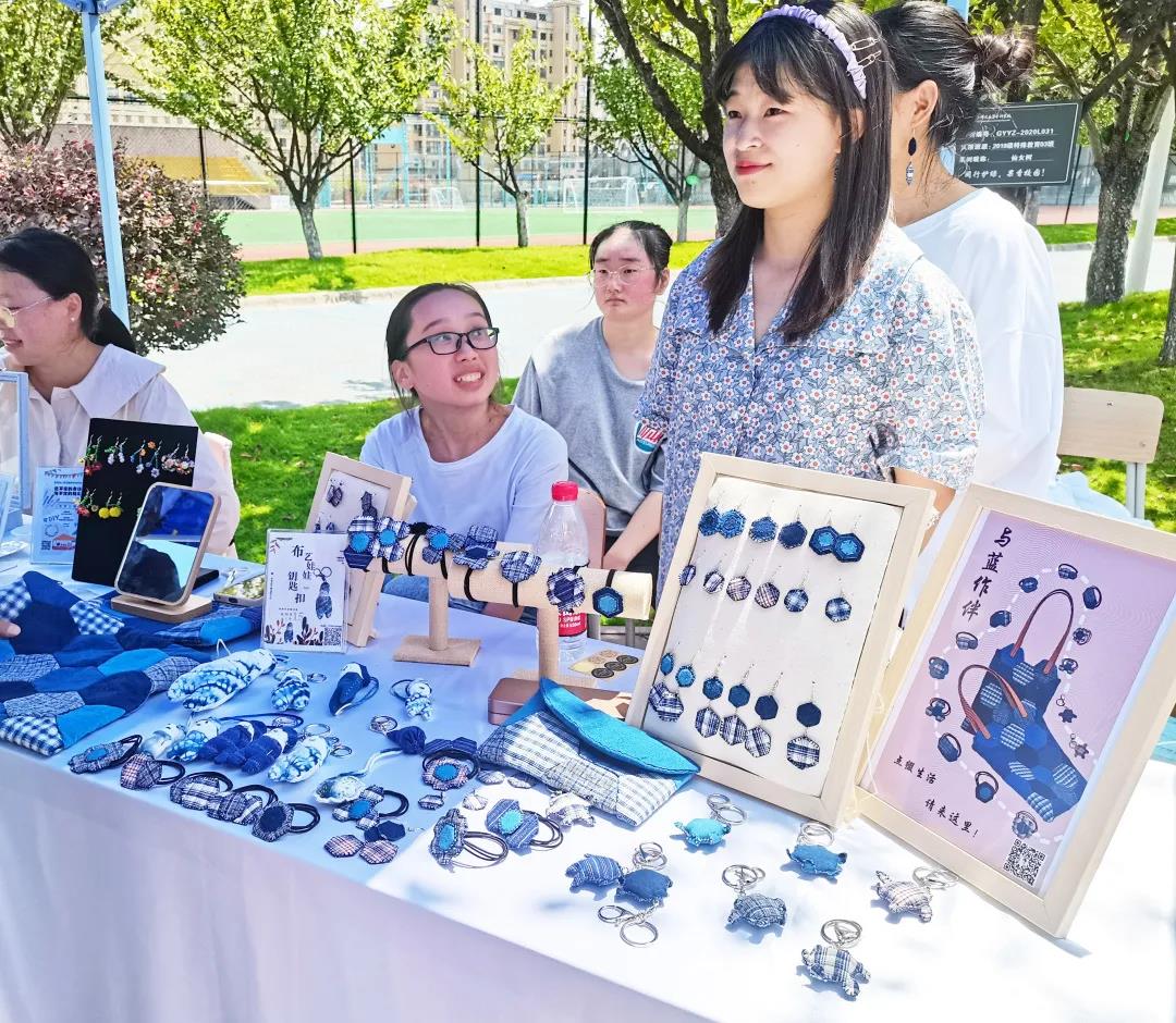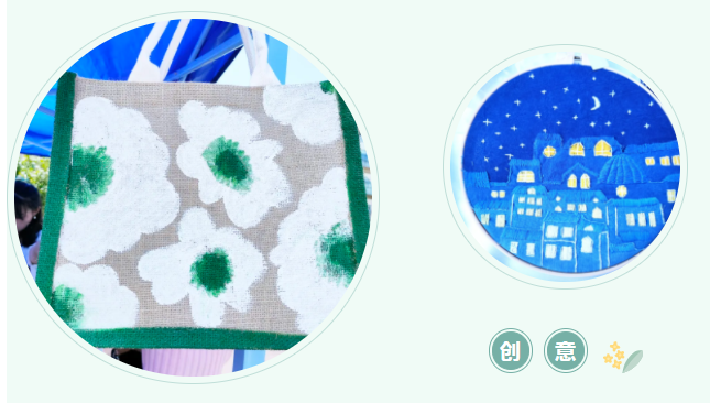 “衣服是使用植物染料浸染的,防虫又防蚊。挎包上的图案是按照自己的想法进行绘画勾勒的。蒲扇上的图案是特色苗族花纹,小玩偶是采用蓝染制作的。”摊主胡丽云告诉记者,“因为制作成本比较高,定价也较高,很多同学都被价格劝退。但这些东西都是自己一点点摸索着制作出来的,都很有意义。希望学校可以多组织这类的市集活动,大家把自己制作的东西拿出来卖,能够增强自己的实践能力、扩宽眼界。”