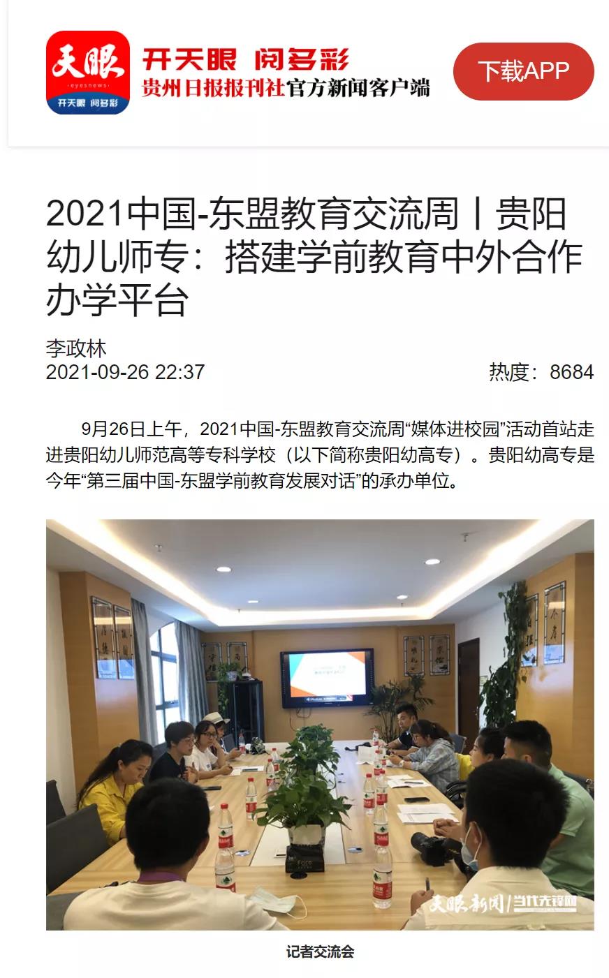 9月26日上午,2021中国-东盟教育交流周“媒体进校园”活动首站走进我校。对此,贵州日报天眼新闻、多彩贵州网众望新闻就我校如何搭建学前教育中外合作办学平台进行报道。