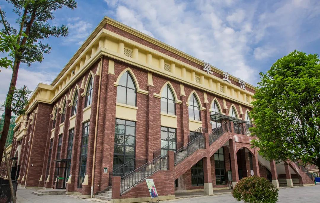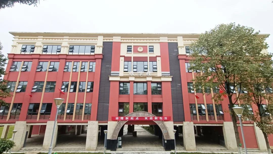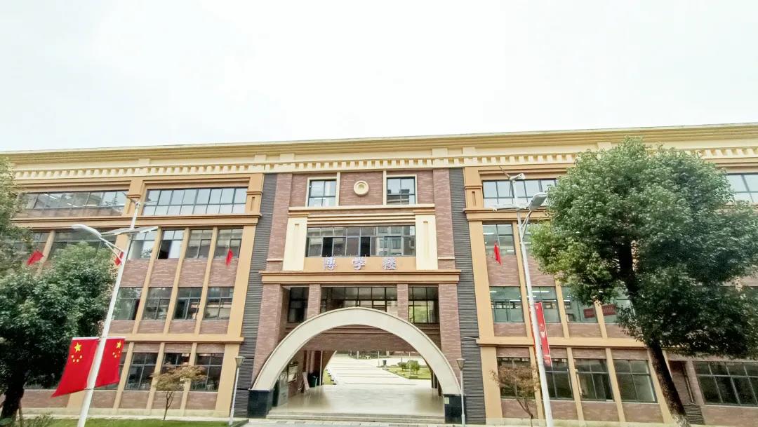 峻德楼:左侧是行政楼,学校领导、行政老师的办公地点;右侧是图书馆,同学们畅游书海的地方