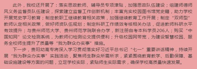 我为群众办实事 | 贵阳幼高专:以党史学习教育为契机,把实事做到师生的心坎上