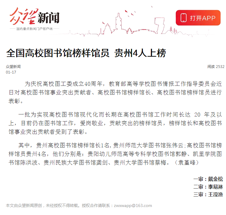 喜报 | 我校教师获评全国高校图书馆榜样馆员
