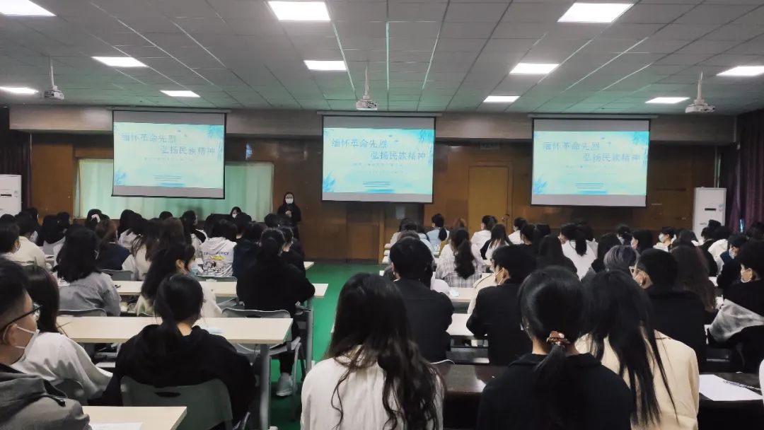 2022年4月5日上午,社会工作系在忠烈校区综合楼六楼舞蹈教室开展“缅怀革命先烈,弘扬民族精神活动”云祭奠活动,时光校区应用泰语专业同步进行。参加本次活动的人员有社工系学生党支部全体党员教师、社工系2020级、2021级入党积极分子、党员发展对象、班级团干、系部各学生组织。