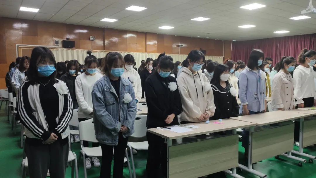 活动中,同学们集体观看视频,了解革命先烈事迹,并以诗歌朗诵致敬、讲述革命故事、抗疫英雄事迹等方式表达追念、哀思之情。最后,同学们手制白色花朵佩于胸前,默哀悼念。活动结束后,全体同学通过易班“云祭奠”平台和“中华英烈网”开展线上祭奠打卡活动,为英烈敬献花篮、留言寄语以追思先人。