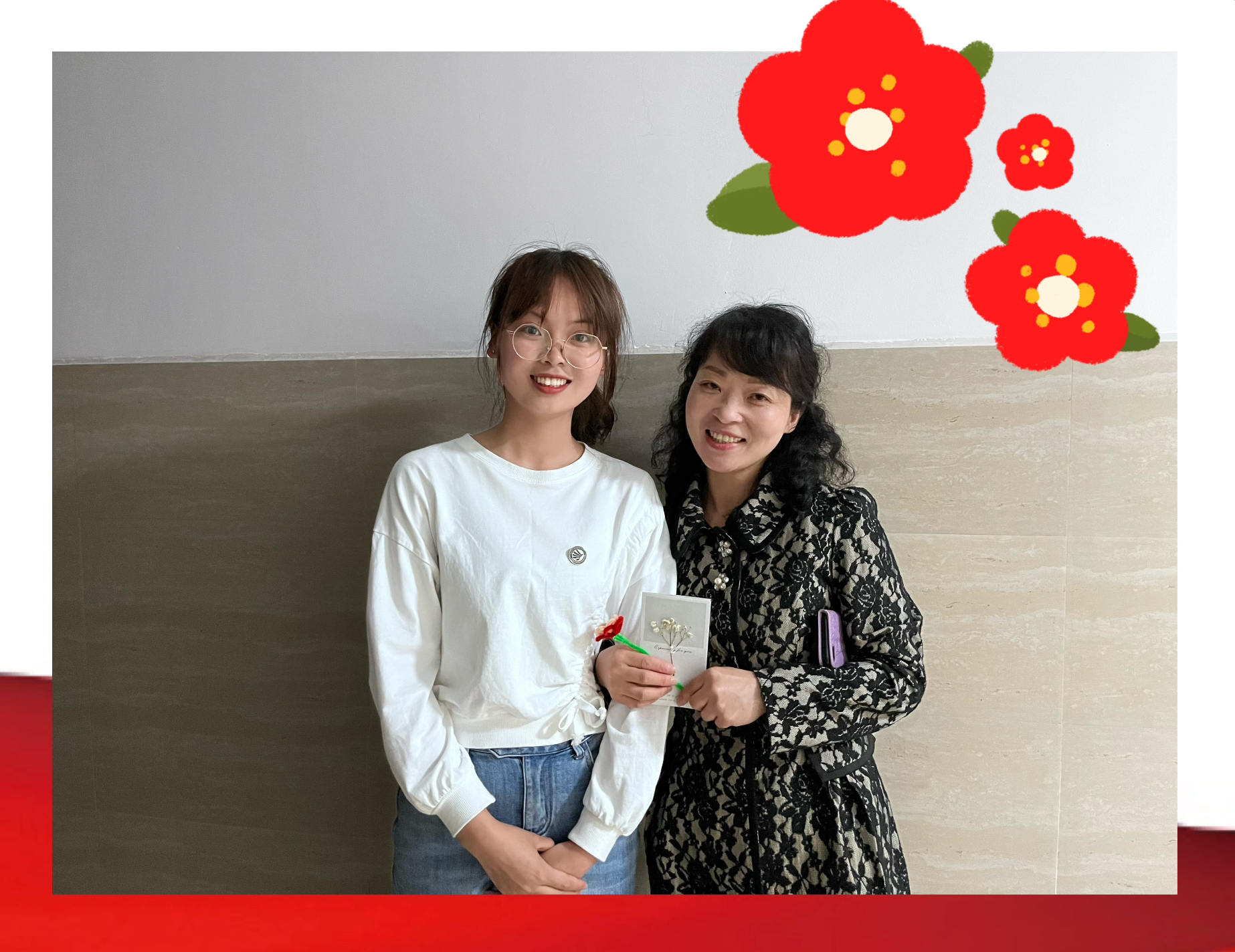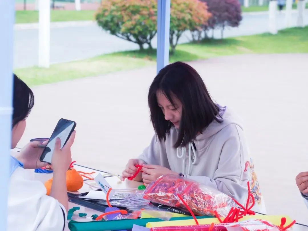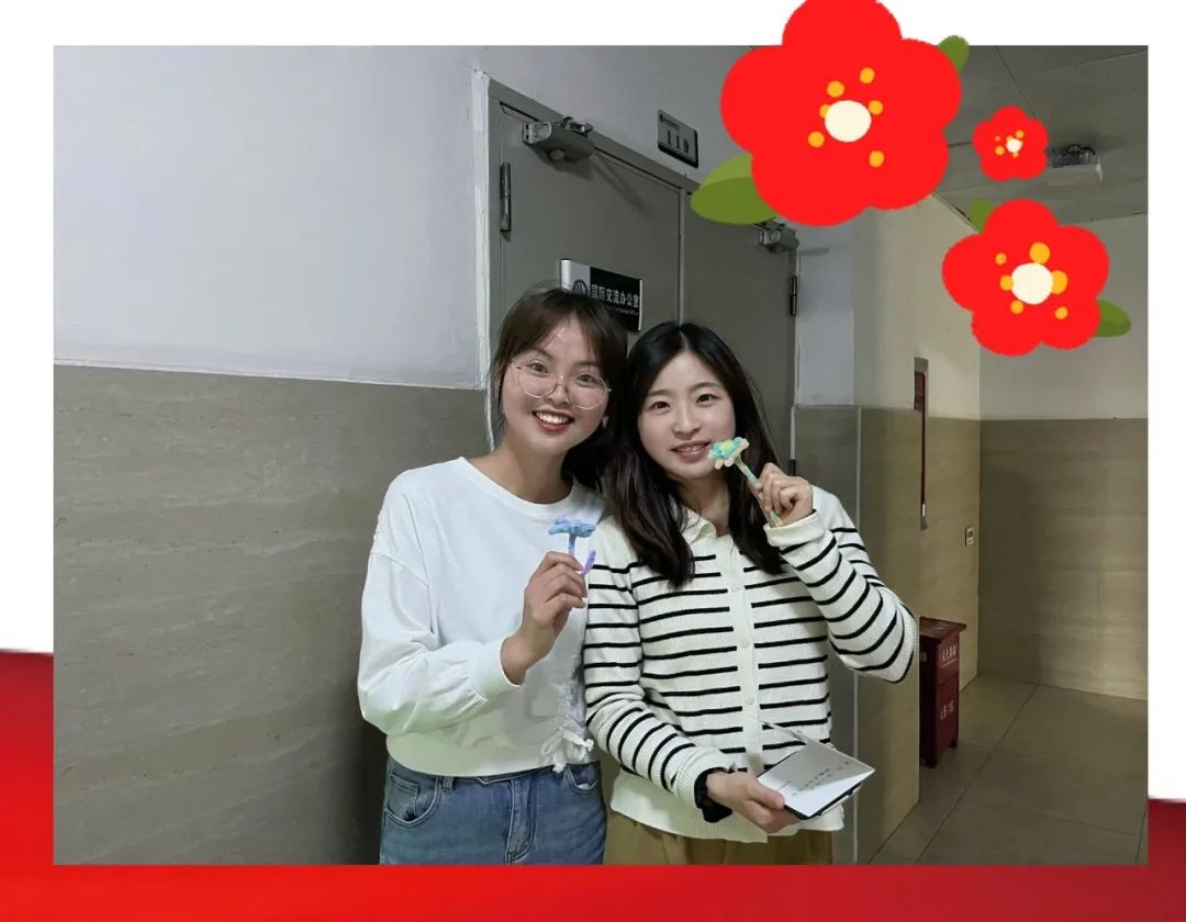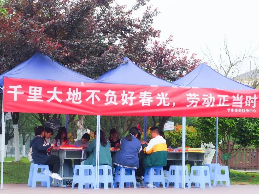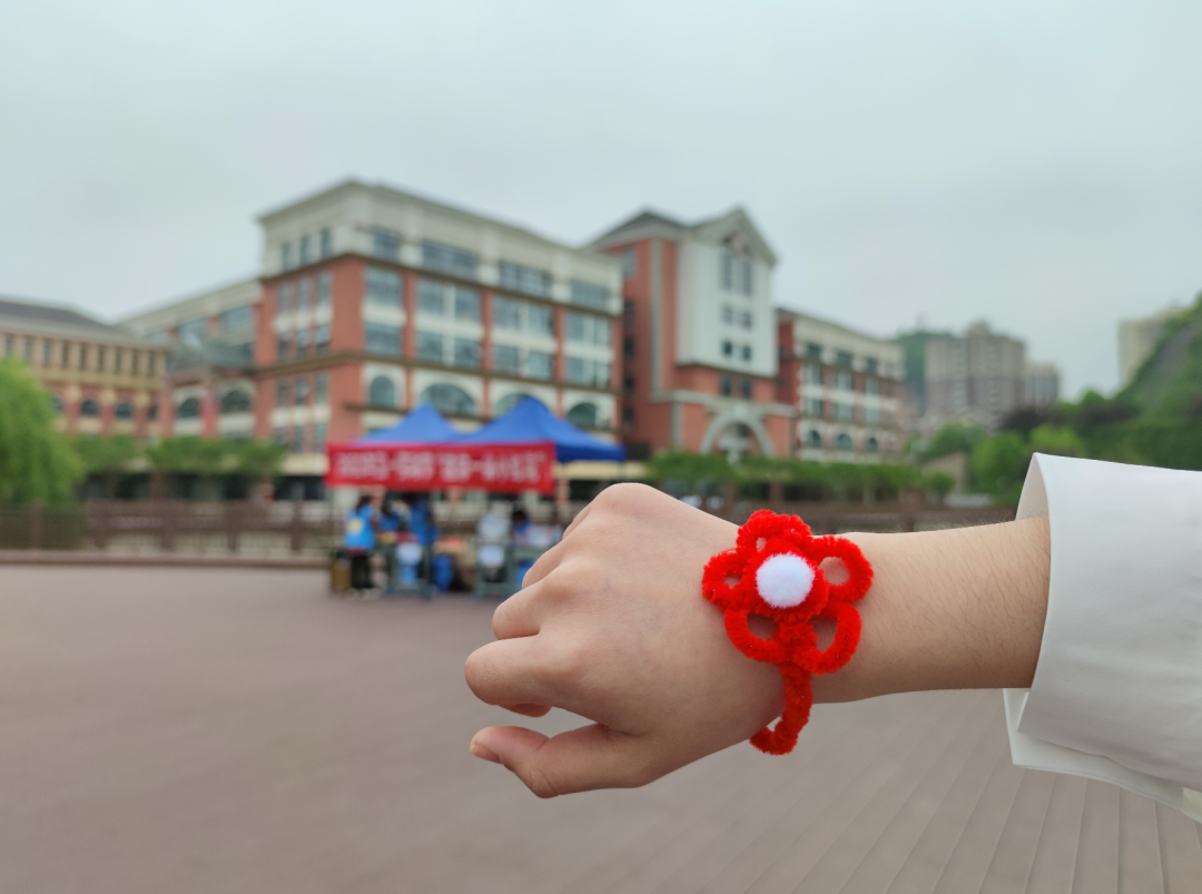 4月29日,我们在曰生湖旁举办了“送你一朵小红花”活动,邀请同学们手工制作小红花送给心中最美劳动者。
