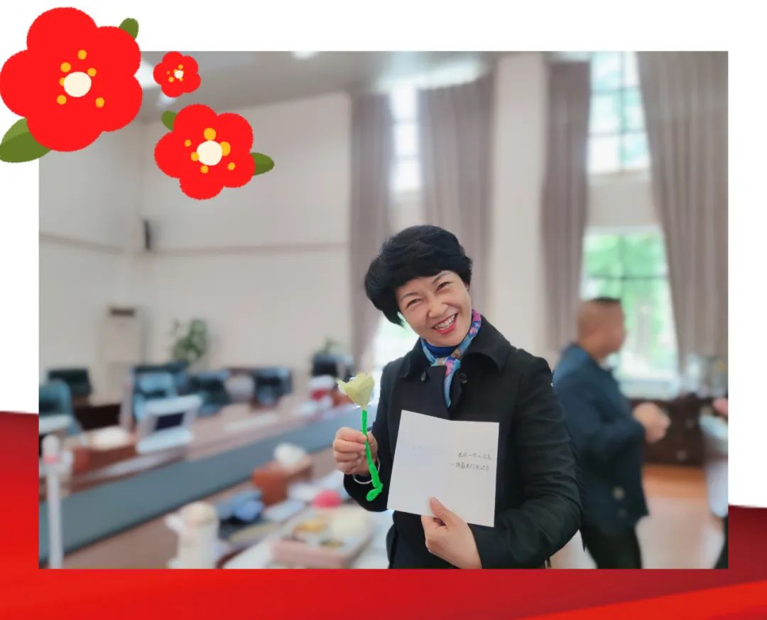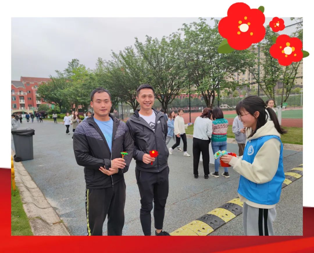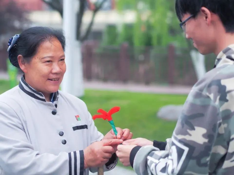 活动结束后,校易班工作站和学生事务中心组织学生代表向学校的老师以及工勤人员送上同学们制作的小红花。