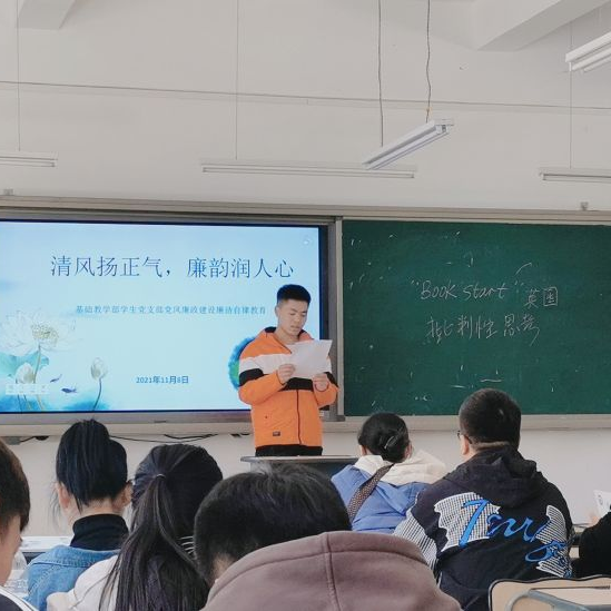 各系部党总支牵头抓总,各学生党支部积极行动,采取线上与线下相结合的方式,通过上“清风扬正气,廉韵润人心”专题党课、组织“党风廉政在身边”党性教育学习交流、参观“风清正气”廉政主题美术作品展、开展“我想向党说”廉政作品征集活动、组织“清正廉洁·甘于奉献”主题团日活动、进行廉洁教育集体谈话、举办廉洁自律主题宣讲、开展廉洁从业专题讨论等多种形式和载体,在毕业生离校实习之前,集中统一组织广大党员、入党积极分子、团员青年开展党性教育,大力营造“以廉为荣、以腐为耻”的校园廉洁文化氛围和风清气正的政治生态环境,帮助同学们进一步坚定理想信念,切实提高党性观念和廉洁意识,不断增强拒腐防变能力。