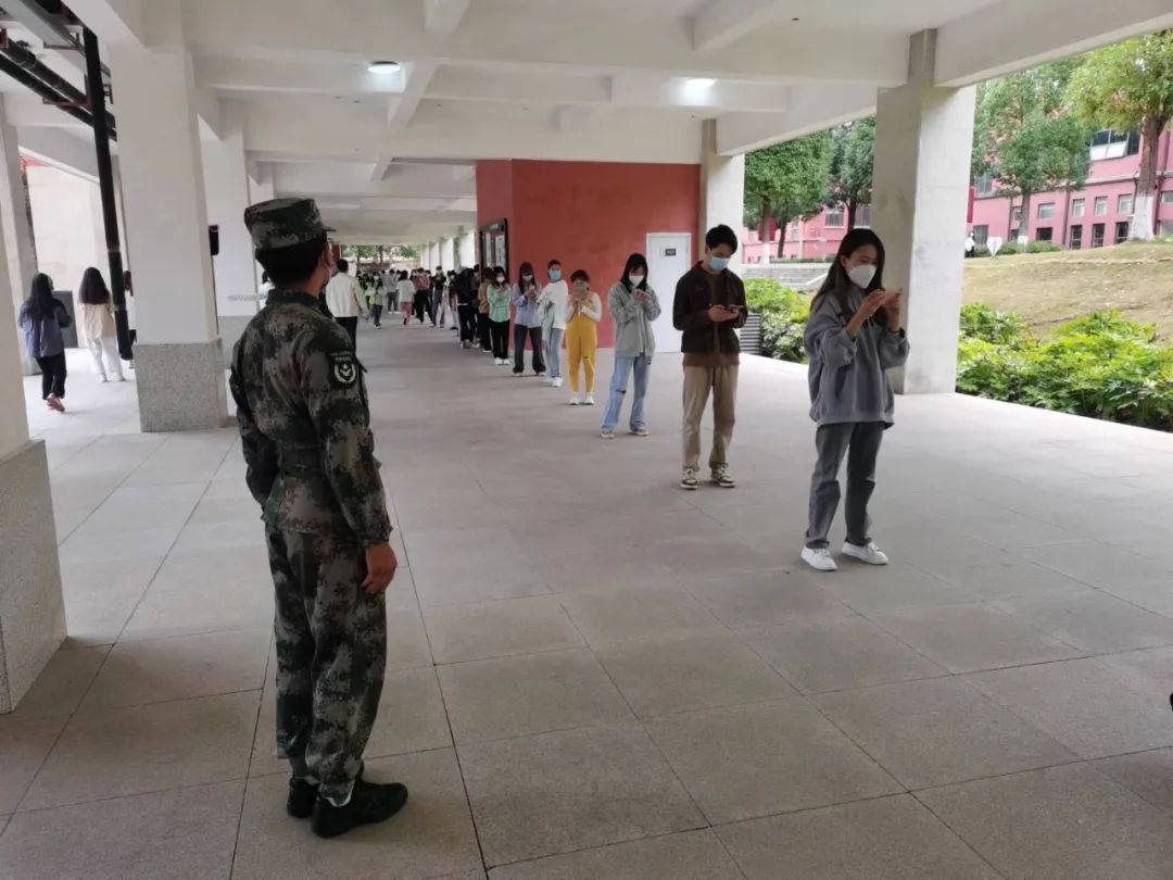 9曰4日,全校开展第一轮核酸检测工作。在经过短暂的培训后,“预征班”的同学们立刻投身各自的工作中。他们听从安排,闻令而动,迅速集结,迎难而上。一个个疲惫又坚定的身影,带着坚定的信念、对学校的热爱,为学校防疫工作贡献自己的力量。