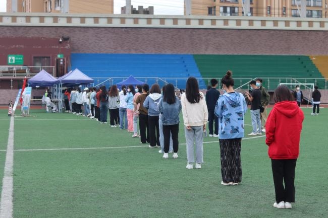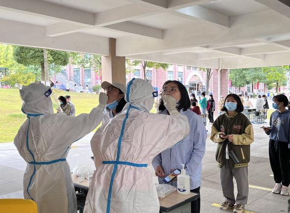 校学生会的杨美同学,今天担任了检测现场的秩序管理员,直到大部分同学都已完成核酸检测,她才微微松了一口气。