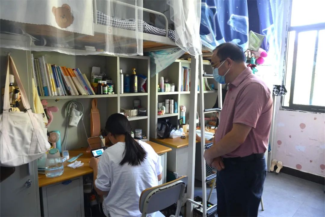 根据当前疫情防控形势,我校自本周起开始实施线上教学。为了保障线上教学的顺利开展,及时了解同学们的学习生活情况,9月5日上午,学校党委书记李华荣,校长翟理红,党委委员、副校长赵雅卫,党委委员、副校长潘丽芬,党委委员、纪委书记陈尧年,党委委员、副校长张世琴及相关部门负责人兵分几路,深入宿舍开展“查堂”工作,走访慰问了在校学习的同学们和宿舍管理工作人员。