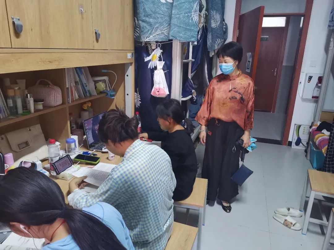 潘丽芬代表学校慰问了3号、4号宿舍楼,与同学们和管理宿舍的老师们进行交流。对同学们提出的问题,她都做了详细的记录,并一一予以反馈。