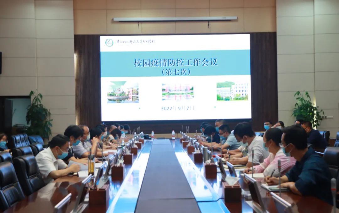 9月7日晚上21:30,我校紧急召开校园疫情防控工作专题会,传达各级指示精神。党委书记李华荣,校长翟理红,党委委员、副校长赵雅卫,党委委员、副校长潘丽芬,党委委员、纪委书记陈尧年,党委委员、副校长张世琴出席会议。会议由翟理红主持。各在校处(室)、系(部)、中心主要负责人,相关工作人员参加会议。