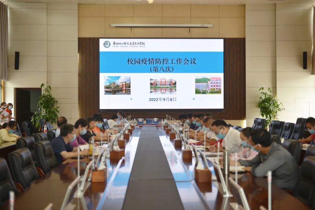 9月8日下午15:00,第八次校园疫情防控工作例会召开。校党委书记李华荣,校长翟理红,党委委员、副校长赵雅卫,党委委员、副校长潘丽芬,党委委员、纪委书记陈尧年,党委委员、副校长张世琴出席会议。翟理红主持会议。各处(室)、系(部)、中心主要负责人,相关工作人员参加会议。