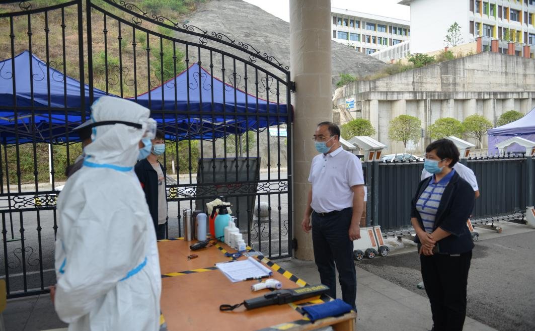 李华荣书记在检查中强调:一是要提高政治站位,思想上高度重视,充分认识学校疫情防控形势的严峻复杂,防止麻痹思想和厌战情绪,始终绷紧疫情防控这根弦,坚决落实好省委、省政府,市委、市政府和省教育厅关于疫情防控的指示要求,切实加强安全隐患排查整治,促进学校的安全稳定。二是要“横到边、纵到底”的开展拉网式排查,坚持不留盲区、不留死角、不走过场,对排查出的安全隐患问题要建立“三张清单”台账,挂账销号,立行立改,举一反三,持续加强整改,化解安全问题,筑牢学校安全稳定坚强防线。三是要进一步加强学校各门岗的管理,监督门卫履职尽责,加强对大门、围墙的管控,坚持“不进不出”,严防死守,坚决防止疫情进入校园,为师生守护好安全稳定和谐的校园环境。四是要紧紧盯住疫情防控重点人员,加强对师生、门卫、宿管、保洁、食堂、采购人员等重点人员的管理,防止私自进出校门和翻墙造成传染,持续巩固来之不易的成果。