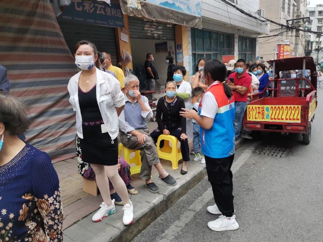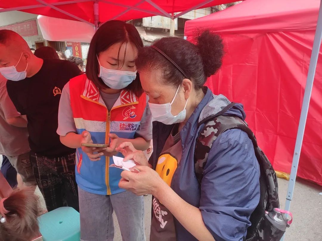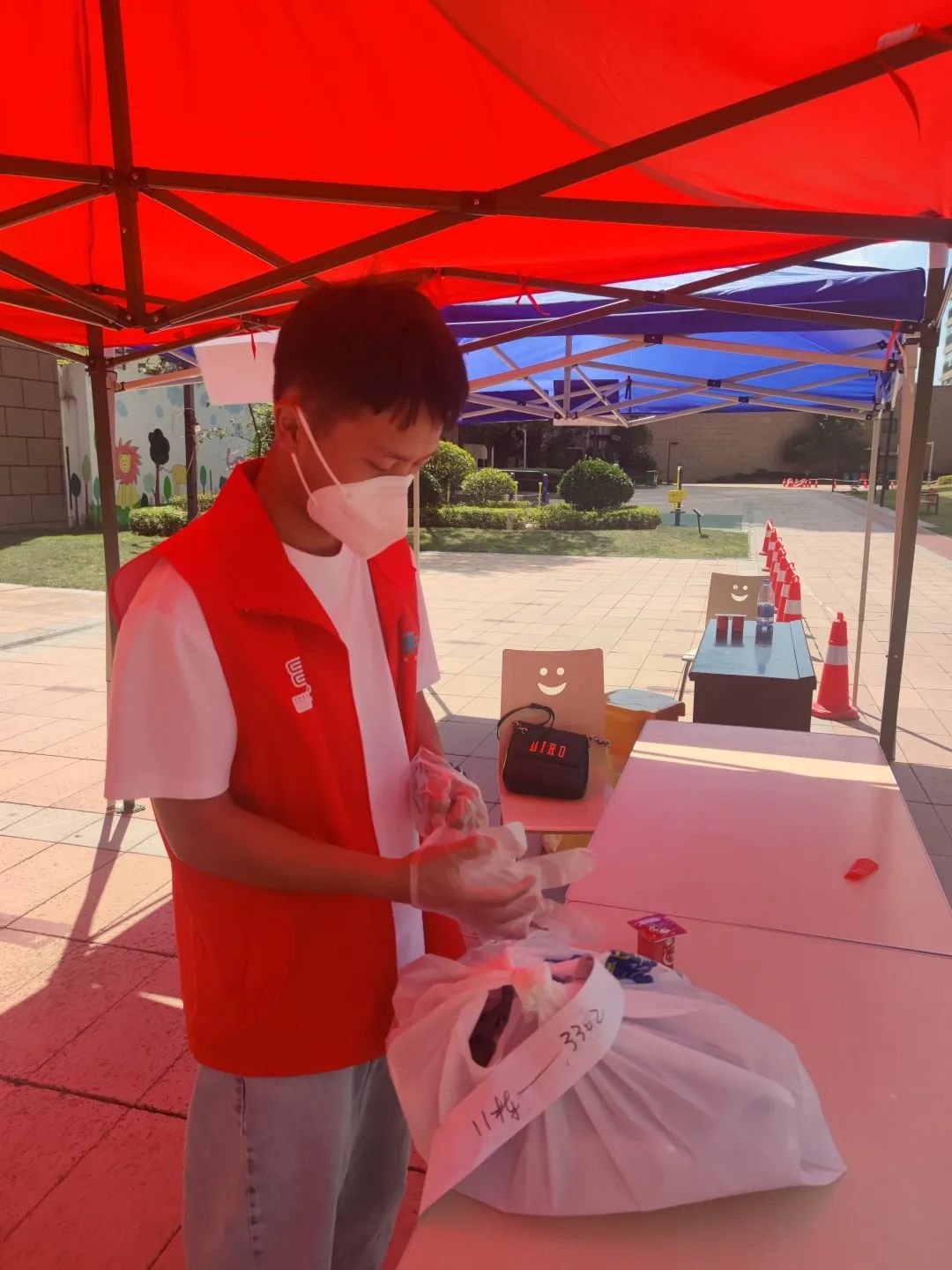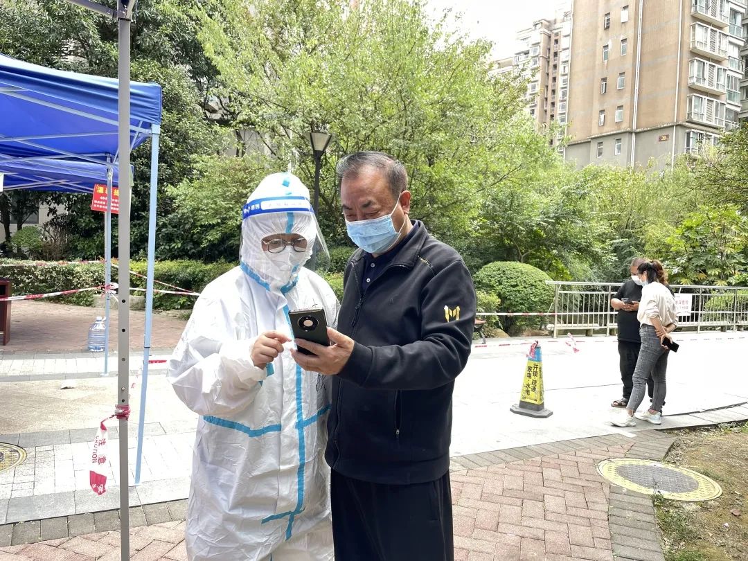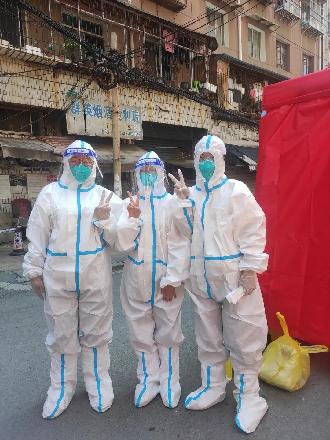 社工系学生陈丽霓、余丽华、李雅翠在新创路街道办事处 新欣社区做志愿者、协助开展核酸采集工作