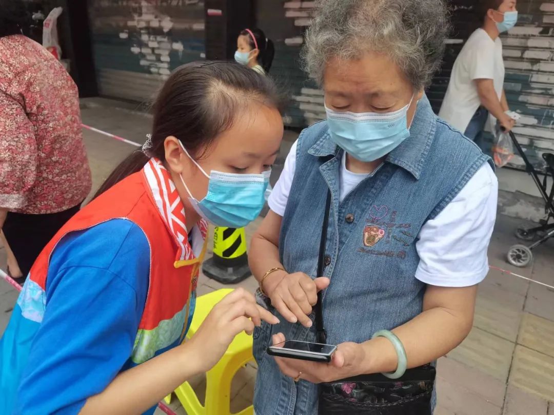 社工系学生李玉頔、张彤菊在新 南明区青山小区协助开展核酸采集工作。