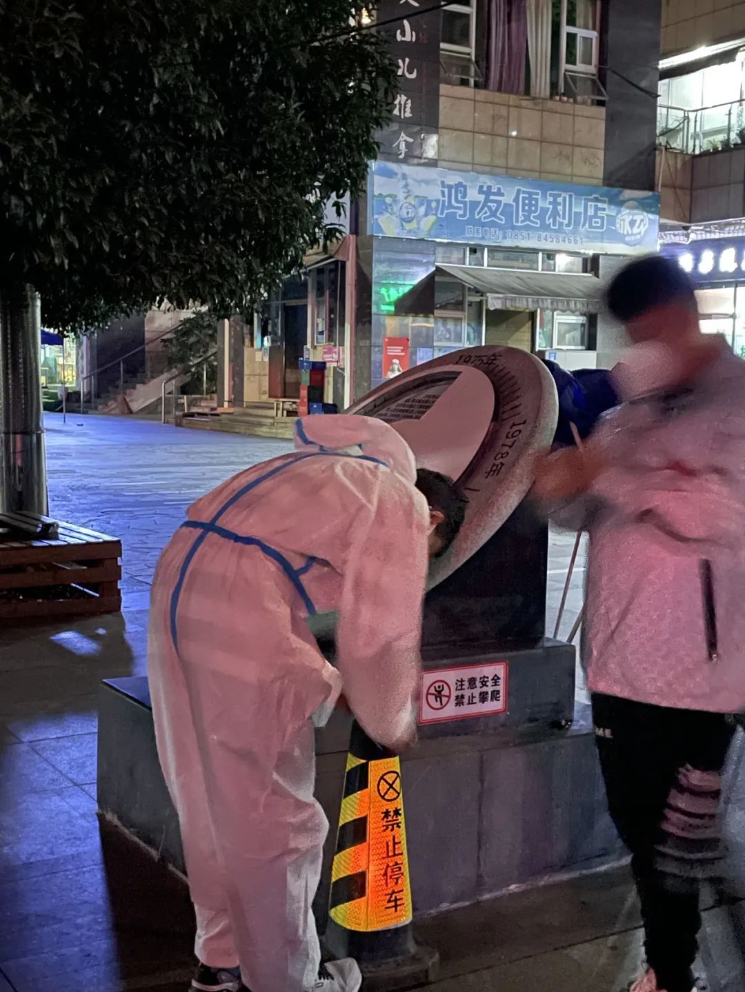 社工系学生龙福安在金元社区参加抗疫工作,与同事们连夜设置卡点。