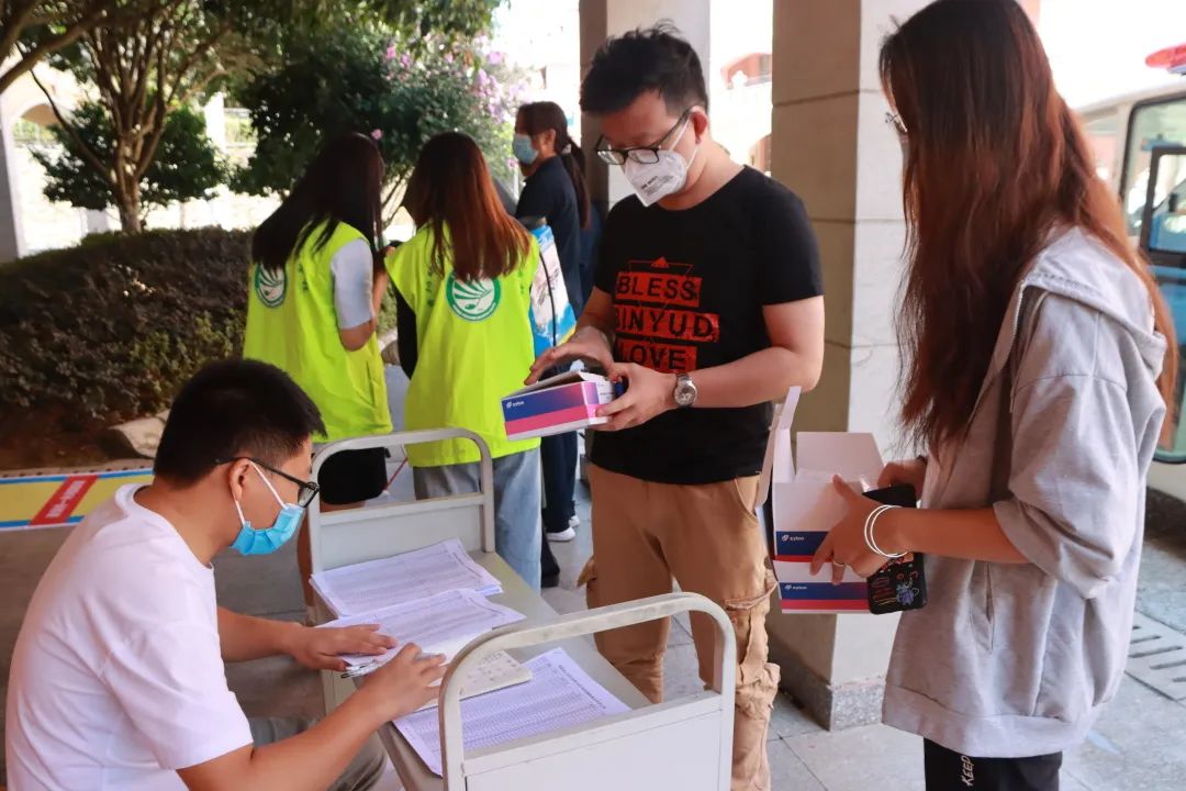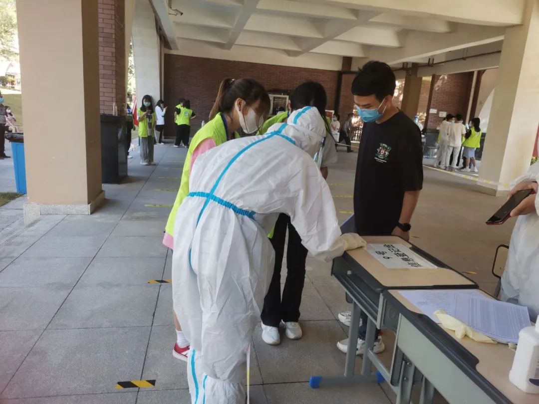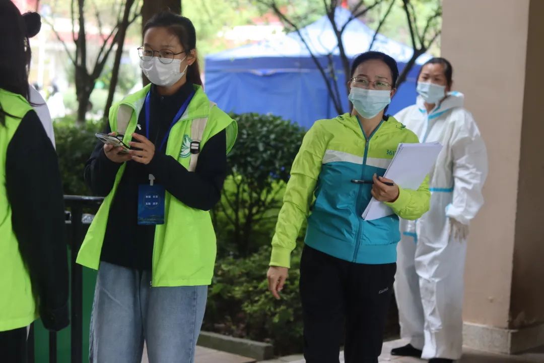 学生干部们个个精神饱满,不怕苦不叫累,积极主动根据学校的防控工作安排进行分工组队,开会安排各项事宜,带上学生干部证件和穿上志愿者标志的“绿马夹”,配合医务人员在一线组织同学们开展核酸检测,更承担了维护校园秩序、搬运防疫物资,进宿舍发放并指导同学们如何正确使用新冠抗原进行自测等工作,一切安排得井然有序。